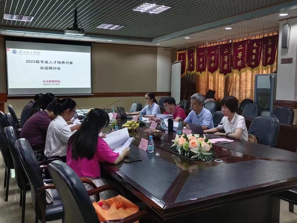 (通讯员:吴霜)为全面贯彻新时代党的教育方针,落实立德树人根本任务,以服务发展为宗旨,以促进就业为导向,适应经济社会发展新常态和应用型人才需要。2023年7月19日下午,经济管理学院经济系在7-301会议室召开了2023 级经济与金融、国际经济与贸易和互联网金融三个专业的人才培养方案论证会议。会议邀请到广东财经大学刘湘云教授担任专家组长,广州华商学院金融学院常务副院长王汉章教授、中融国信托有限公司财富中心副总冯小津、大为科技有限公司总经理翁美冰担任校外论证专家,广州理工学院经济管理学院副院长倪江崴、经济系主任黄爱青,经济系副主任陈少英、经济系李彬教授和吴霜等校内老师参加了会议。
