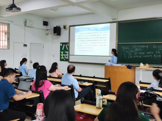 会议伊始,李培祥院长对21周试卷、论文、教学资料检查工作进行总结,并强调2024届毕业设计(论文)是我校本科合格评估必评的重要内容,全院上下务必重视此项工作。其次,学院邀请我院营销系胡劲教授为全院教职工进行论文指导培训工作。胡劲教授从学术论文的选题、选题的意义、选题的原则、选题的途径、选题的方法五个方面进行介绍,并分享自身指导学生论文的经历,深入浅出。胡劲教授的精彩分享为我院论文指导教师,尤其是新青年教师、企业新进教师提供了宝贵经验。