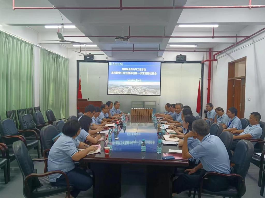 9月20日下午,智能制造与电气工程学院迎接学校评建工作第一次常规性检查,学校检查工作组由副校长张世梅带队,成员有评建办常务副主任陈英征、副主任姜徳刚、副主任黄亚兰、教学质量监测与督导中心副主任王宇教授、陈婉欣老师。会议由李玉忠院长主持,学院参会人员有党总支书记吕在艳、副院长朱亚峰、副院长孟遂民、、副院长王银河、工程中心主任唐露新、工程中心副主任陈吹信、系主任、办公室主任、评估专员。