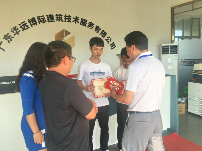 (通讯员:李雪平)10月31日,广州理工学院驻校企业合作工作室宣布为在该公司锻炼的学生颁发奖学金,以表彰他们在工作期间展现出的卓越能力和勤奋精神。广州理工学院与广东华远博际建筑技术服务有限公司(简称华远博际公司)联合成立的校企合作企业工作室在我校工程楼8楼为我校建筑工程学院取得优异成绩的学生发放荣誉证书与企业奖学金。“华远博际公司”总经理王日会、办公室主任陈惠芳,广州理工学院建筑工程学院党总支副书记阴凡、土木工程系李雪平老师、学生吴健荣、李坚出席会议。