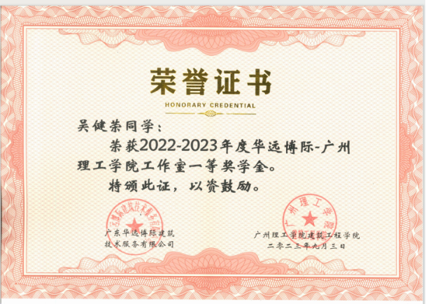 吴健荣同学获得一等奖学金