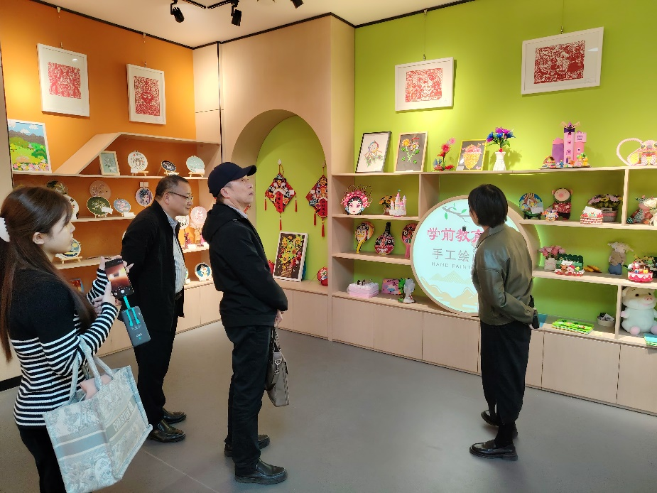 周卫忠教授、陈南先教授、黄静博士等在学前教育手工展厅参观