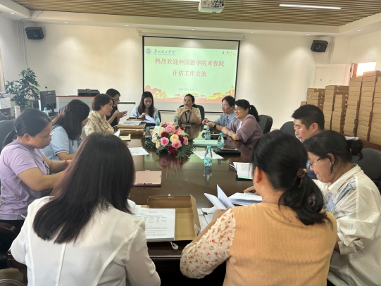 11月7日下午,外国语学院特别邀请了工商管理学院党总支书记杨惠、评建专员胡劲、办公室主任易明丽,与学院教学副院长冯军霞、评建顾问田祥斌,副书记蔡俊及评建工作人员开展评估工作交流学习。