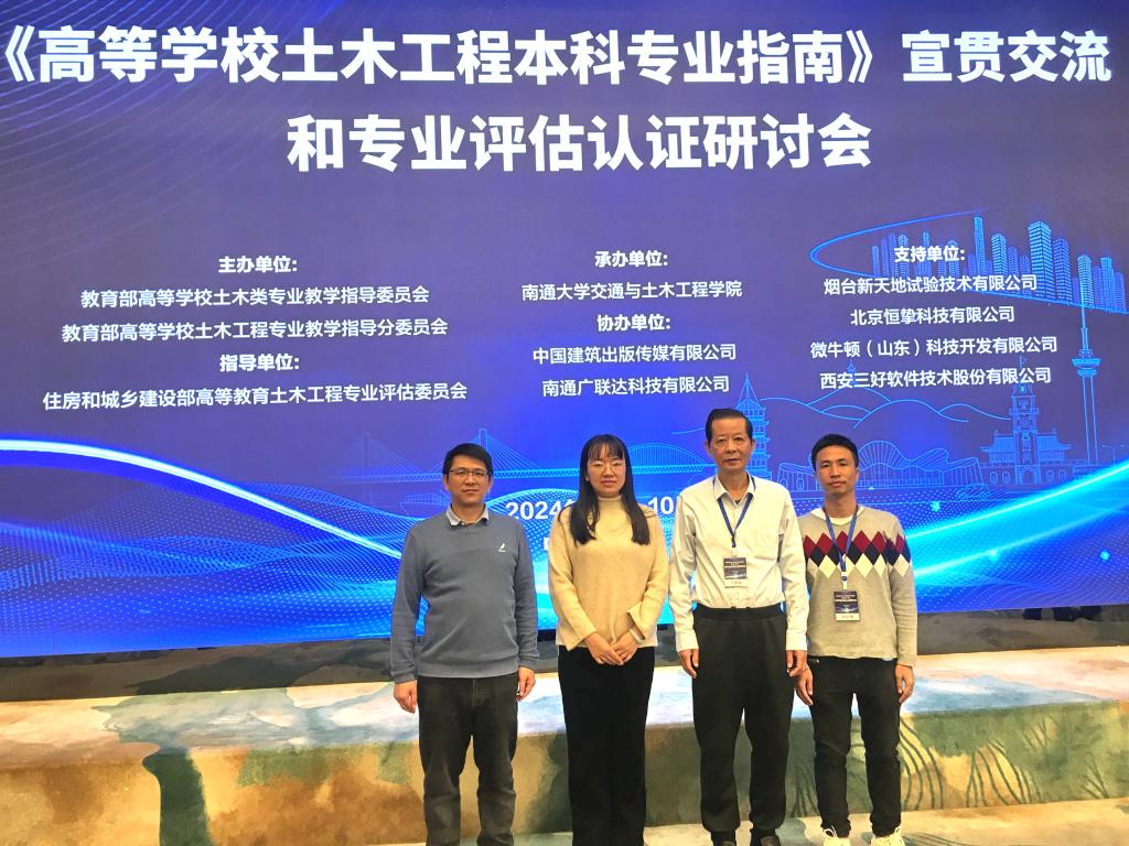 (陈铃培)为进一步提升教学水平及推进学科建设,3月8日-10日,建筑工程学院院长吴炎海带队一行4人赴南通大学参加由教育部高等学校土木类专业指导委员会和住房和城乡建设部高等教育土木工程专业评估委员会主办、南通大学承办的《高等学校土木工程本科专业指南》宣贯交流和专业评估认证研讨会。