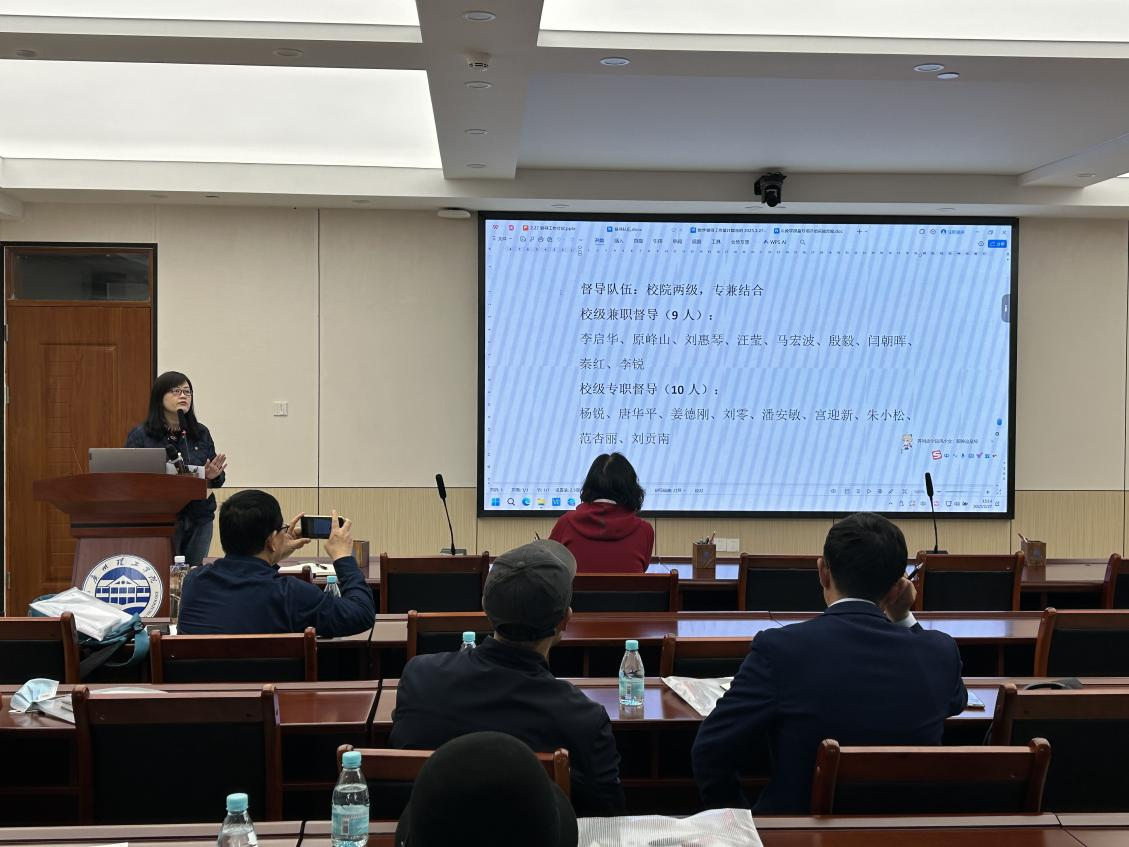 随后,质评中心主任马郁详细安排了2025年即将开展的19项专项评估工作,涵盖试卷评阅质量、课程设计(含实训环节)、实习教学质量以及实践教学基地建设质量等多个方面,并对督导队伍的建设及其具体工作职责进行了清晰的界定与说明。本学期,学校已全面加强并充实了督导队伍,采取专兼职相结合的方式,分为校级与院级两级督导架构,确保校级督导能够覆盖全校所有学院,院级督导则深入至每一个专业,实现教学质量监控的全方位、深层次覆盖。
