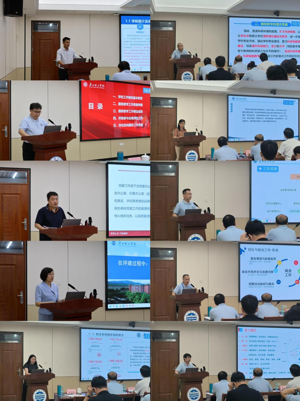 党委工作部、学校工作部、教学管理部等10个职能部门负责人结合部门职责,汇报了部门服务教学的思路、做法与成效;通识教育学院、外国语学院、智能制造与电气工程学院等13个二级学院围绕应用型人才培养,重点汇报了人才培养取得的成效及特色亮点。